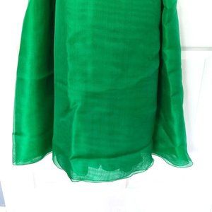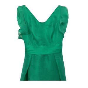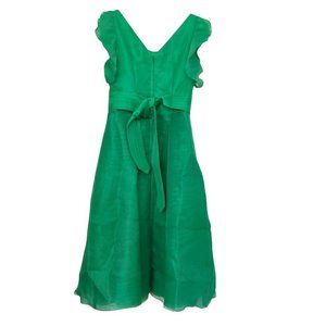 Azadeh Couture green bridesmaid dress with ruffle sleeves; v-neckline; tie waist.