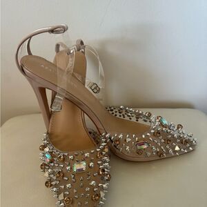Azaela Wang Nude Ankle Strap Crystal Studded