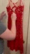 Red lace over a nude mesh slip creating a barely there illusion