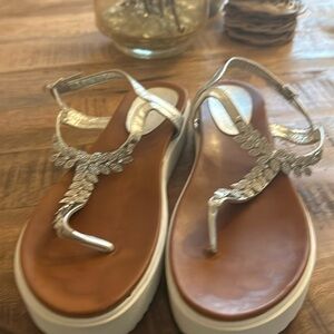 Sparkling crystals highlight the dainty leaf details of this glamorous sandal complete with a thong strap. Azalea Wang sandal gently used size 10