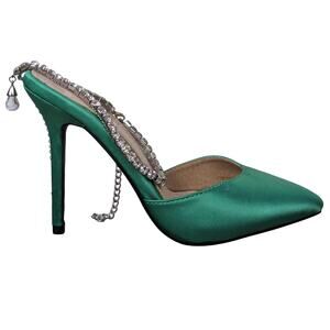 Azalea Wang Ashley Stiletto Heels 6 Green Rhinestone Ankle Strap Pointed Toe