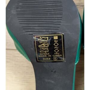 Emerald green Azalea Wang size 6 high heel backless pumps with rhinestone ankle strap detail.