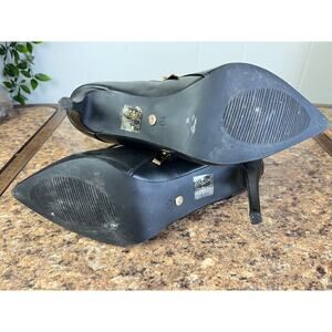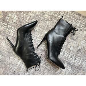 Azalea Wang Astoria Lace Up Stiletto Bootie 10 Black Faux Leather Goth Witchy Pointy Toe Vamp
