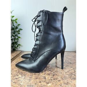 Azalea Wang Astoria Lace Up Stiletto Bootie 10 Black Faux Leather Goth Witchy