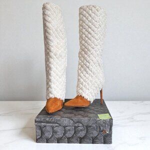 Azalea Wang Beige Quilted Sherpa Tan Suede Knee-High Stiletto Boots Size 9 NWB