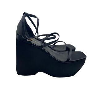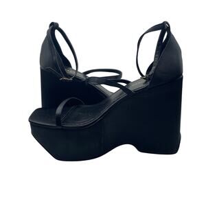 Azalea Wang Black Satin Strappy Platform Wedge Heels Size 10 Y2K Clubwear sexy