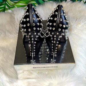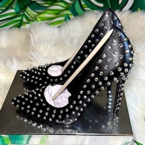 Elevate your style with these chic black studded women's heels. Perfect for adding an edgy touch to any outfit. These studded dolls are timeless, unique, elegantly edgy and NEW. Included are original box, individual shoe dusty and gift.🎁