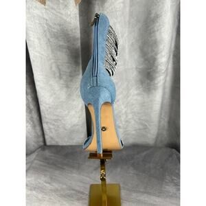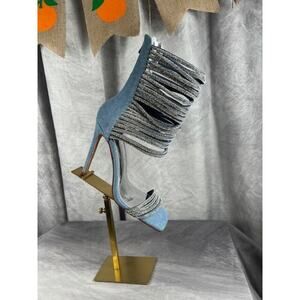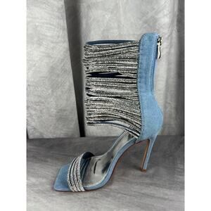 Azalea Wang Cicely Embellished Gladiator Sz 8.5 Stiletto Denim Sparkles Sexy