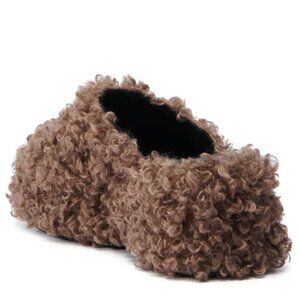Runs Big Go 1 Size Down THis Brown Curly Mule is a cozy, clog-like style featuring a curly faux fur upper, a chunky flatform sole, fuzzy inner lining, a cushioned insole, and a simple slip-on fit. Style them with a monochromatic sweatsuit and a trench coat for the perfect fall farmer’s market fit.