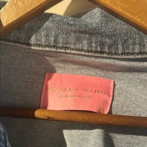 Azalea Wang Denim Cropped Jacket with Orange Trim
