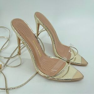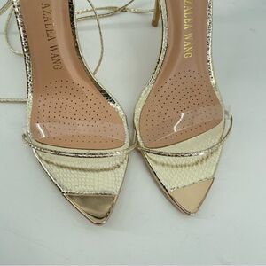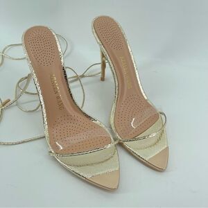 Azalea Wang Empress Gold Faux Leather Lace Up Open Toe Stiletto Heel Size 8.5