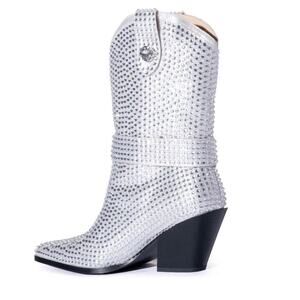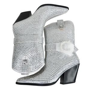 Azalea Wang Federica Silver Crystal Shortie Western Cowgirl Boots Rhinestone 6.5