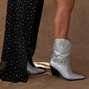 12th Tribe Azalea Wang Federica Silver Rhinestone Western Bootie. Metallic Sparkly Silver Crystal Shortie Western Cowgirl Boots. Brand New in Box. Sold Out Online