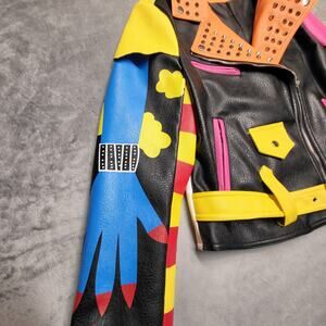 Azalea Wang Graffiti Screams Jacket Womens XL Moto Studded Faux Leather WX055D