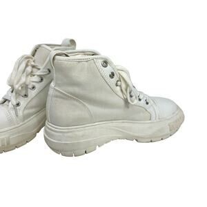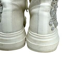 Azalea Wang High Top Rhinestone Embellished Canvas Sneaker Trainer Shoe - WHITE