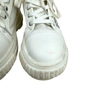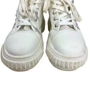Item in Good Preowned Condition. Wore twice, Platform lug sole, Rubber encased toe box, Padded insole, Sewn on Plastic rhinestones, Lace up closure.