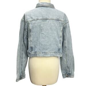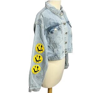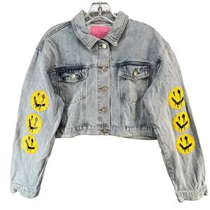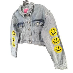 Azalea Wang Jean Jacket Womens Size L Blue Denim Cropped Joker Smiley Gothic Grunge Streetwear