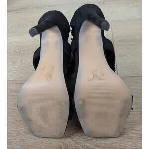 Azalea Wang Lianna Bootie Heels 6 Black Multicolor Crystal Feather Applique Glam