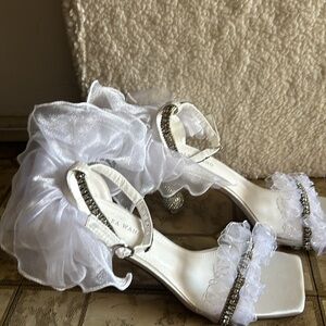 Take your look to glamorous new heights with this stunning ankle-strap sandal embellished with dazzling crystals. Size 8.5 gently worn