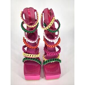 Azalea Wang Pink Corrine Chain Link Platform Sandals Size 7