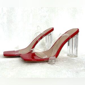 Azalea Wang Red with Transparent Straps and Clear Heels Square Toe Size …