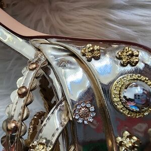 Azalea Wang brocade studded heels. Worn once for a photoshoot, some signs of wear (see last 2 photos) but hardly noticeable. Size 9 and true to size.