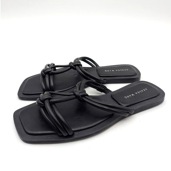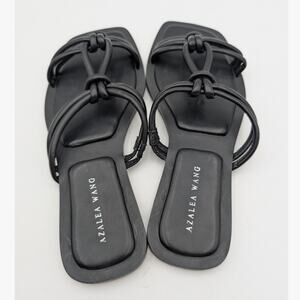Azalea Wang Stetson Tubular Straps Knot Flat Sandals Women's Black Size US7 EU38