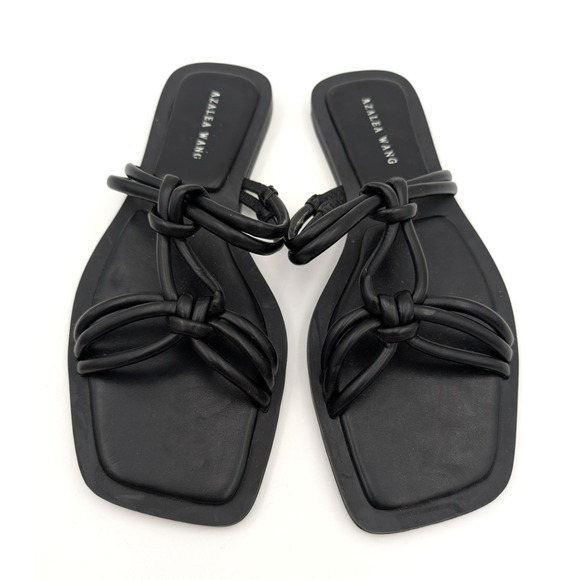 Azalea Wang Stetson Tubular Straps Knot Flat Sandals Women's Black Size US8 EU39