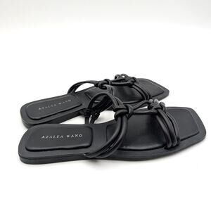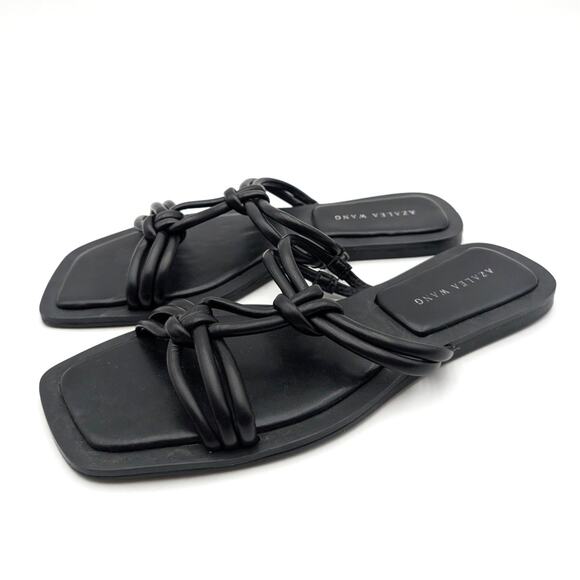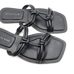 Azalea Wang Stetson Tubular Straps Knot Flat Sandals Women's Black Size US7 EU37.5