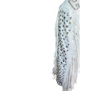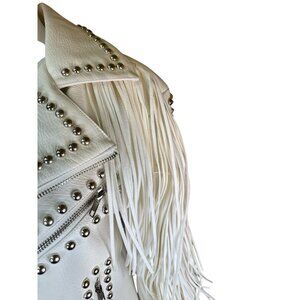 Azalea Wang The Karl Leather Hitched Fringe White Moto Jacket Size XL Bride NWT