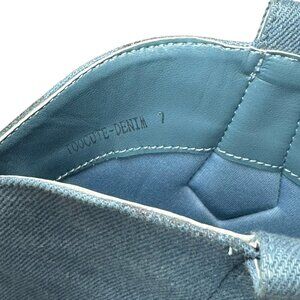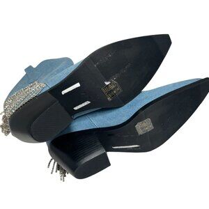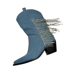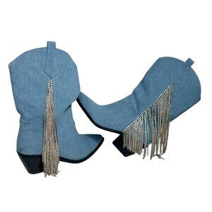 Azalea Wang TooCute Denim Rhinestone Fringed Mid Calf Cowboy Boots Size 7 NEW