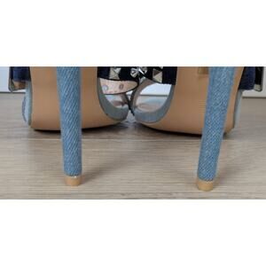Azalea Wang mid-calf denim strappy high heel stiletto sandals in light and medium blue shades, size 6. New without box, never worn