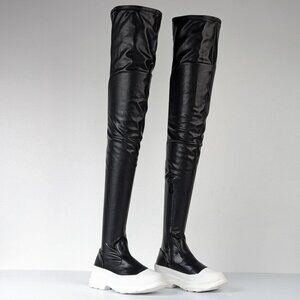 Azalea Wang Wmn Way Vegan Leather Stretch Platform Thigh High Festival Boots 7.5