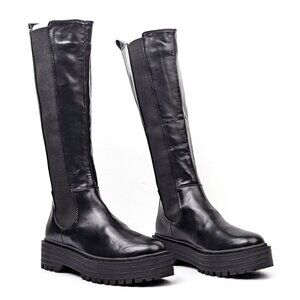 Azalea Wang Women Sue Black Vegan Leather Platform Party Fashion Boots sz 8.5