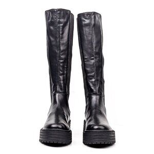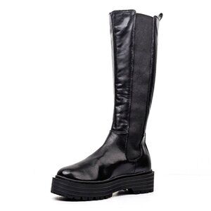 These boots are in new condition, never worn, with no signs of wear on the soles. Crafted in China, they feature a sleek faux leather upper, fabric lining, and sturdy rubber soles for dependable traction. The side zipper design ensures effortless on and off, and the platform style adds a trendy touch.