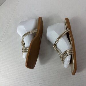 Azalea Wang Women's 8 Metallic Gold Slip On Square Toe Knot Sandals NWOB
