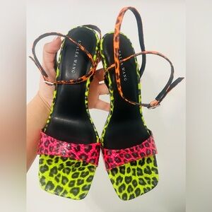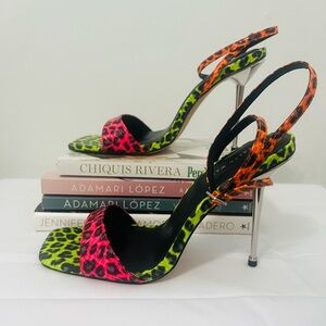 Azalea Wang Womens Kavi Pink Leopard Print Sandal Size 9 But Fits Like An 8