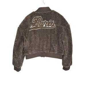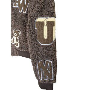 Azalea Wang Womens Y2K Teddy Varsity Bomber Jacket Size XL Brown Sherpa Fleece