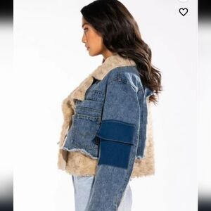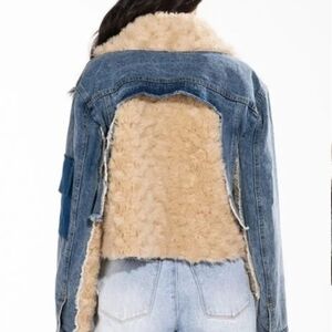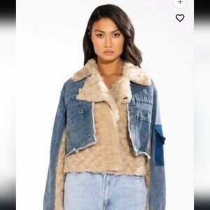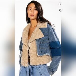 Azalea Wang mix it up cropped shearling denim jacket small NWT