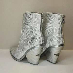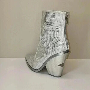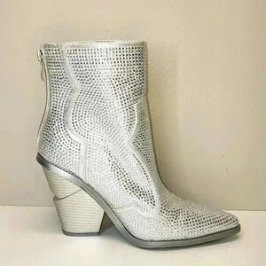 This Western-style boot is covered in dazzling rhinestones. Back zip. 2" heel. Synthetic.