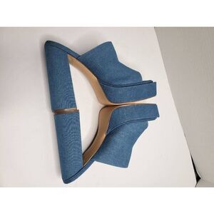 Azalea Wang Chunky Platform Denim Mule Sandal Blue Block Heel Size 11 Open-toe