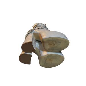 Azalea Wang - white alligator platform ankle boots- 6.5. Lined with silver buckles and chains with 6 inch heels. #AzaleaWang -#Platformboots