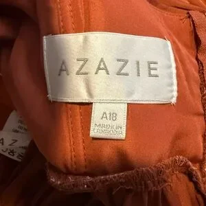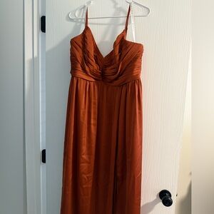 Azazie bridesmaid dress satin stretch in the shade Auburn. The only alterations made was hemming.
