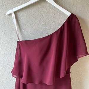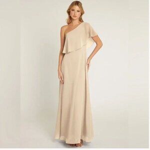 Azazie A-Line One Shoulder Chiffon Floor-Length Gown Size A6