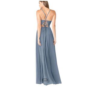 • Bridesmaid chiffon Aaida long back lace up a-line dressy semi formal blue long length evening wear