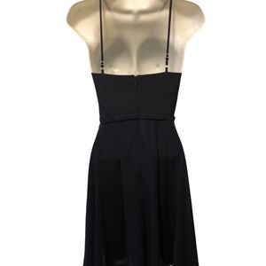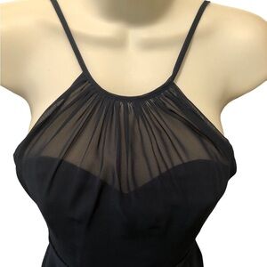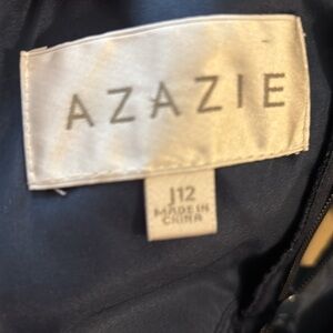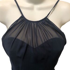 Azazie Alayna Short Bridesmaid A Line Dress Navy Sz J12 High Neck Sheer Chiffon