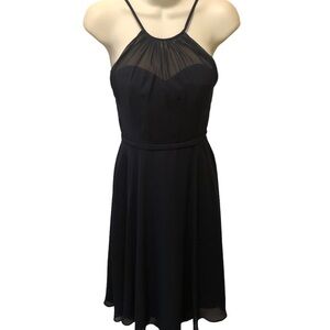 Azazie Alayna Short Bridesmaid A Line Pleated Dress Navy Sz J12 Sheer Chiffon High Neck Full Skirt