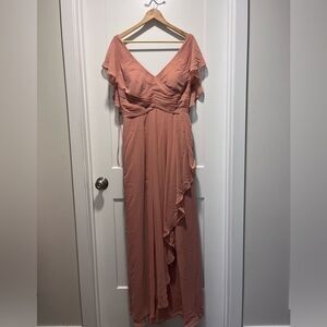 Azazie Asymmetric Chiffon Maxi Dress Prom Bridesmaid Champaigne Rose Size 10