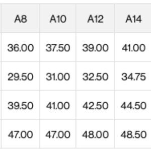I'm so sorry, the size chart in the pics only goes up to A14. Would you mind advising what the measurements are for the chest and waist please?