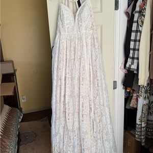 @rebeeccale102 it is brand new with the tags. it also comes with a garment bag. I'll see if I can see all the photos in the post. I'll share it and see if that helps. I prefer not to give out my number and correspond via text